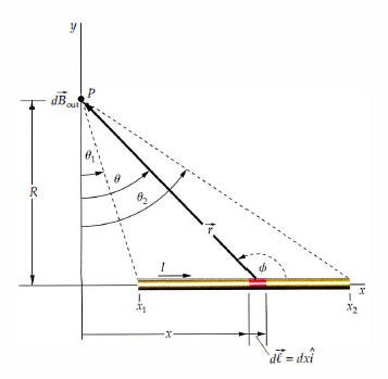 Hukum ini menyatakan bahwa medan magnetik 𝑑𝐵 di titik 𝑃 yang disebabkan oleh elemen kawat sepanjang 𝑑𝑠 yang dialiri arus tetap 𝐼 adalah: